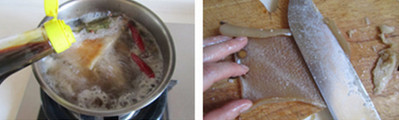 4、煮好后肉皮拿出来将背面的油脂再去除干净。
