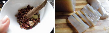 3.这道菜需要的香料,八角3个、花椒、三萘、桂皮1个