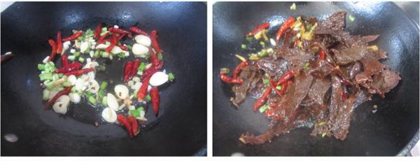 2. 如果不用油炸,可以用小火慢慢煸干牛肉水分,让水汽挥发
