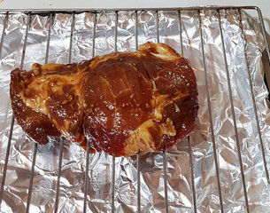 4、架放烤盘上,200度C烘烤约35-40分(我今天用的肉比较厚烤了50分钟,有点焦了) 。