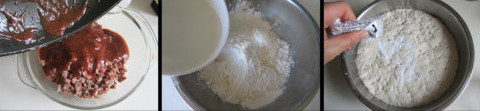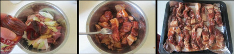2、抓匀后用叉在在肉上扎些小洞,放入冰箱中冷藏腌制三个小时上面,中间注意拿出来翻动几次。