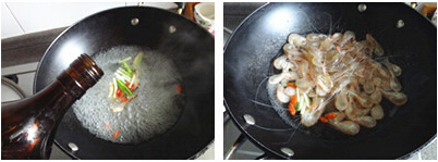 4、倒入白米虾