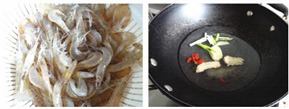 1、鲜活白米虾洗净备用