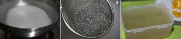 3、捞起透明的西米沥干水分放在冰水里冷藏。