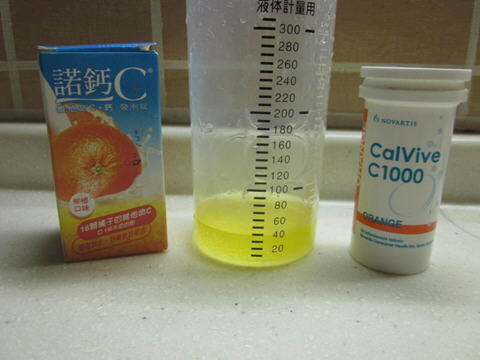 3、将1/2锭的诺钙C发泡锭投入40cc的冷开水溶解。