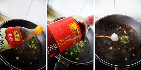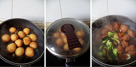 11、然后放入洗干净的青菜,再次煮上5分钟,青菜变软,加盐调味,最后淋入水淀粉勾薄芡关火。