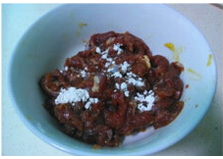 2、先放糖,再放其它调料,用手抓匀后,放入1大勺油拌匀,静置10分钟上面。这样有助于牛肉嫩滑。