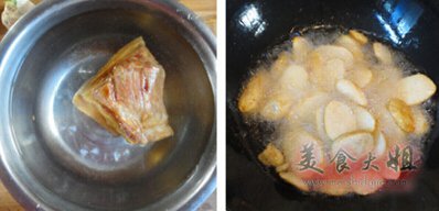 13.锅中入少许的油,加入葱、姜、蒜炸香。
