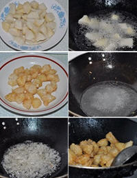 4.锅内放少量水,加入适量的白糖熬煮。