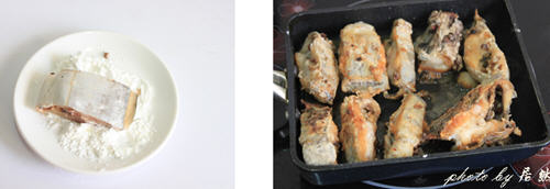 3、用一只小碟子装适量淀粉,带鱼两面拍少许淀粉。
