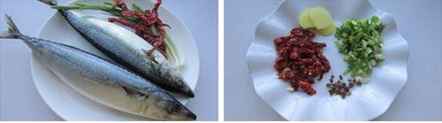 1、把鲅鱼洗净清理鱼肚的垃圾再次清理干净洗净,用盐抹均匀腌制10分钟左右,葱姜洗净切末,香葱洗净切段,辣皮子泡泡切段