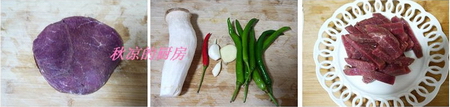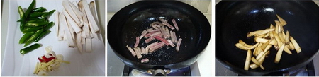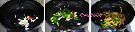 配料:蒜切片,姜切丝,杏鲍菇切条,朝天椒、杭椒