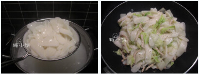 7.切片年糕煮熟以后捞出沥水(我不喜欢沥得很干,觉得炒的时候有点水分成品口感更好)