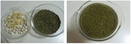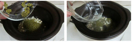 1. 今天甜品搭配都是清热解暑、滋阴润燥的食材,绿豆相应的多一些,绿豆泡上几个小时更容易烂些;,如果时间不允许的话也可提前用高压锅把绿豆压一压,但切记高压时间过长,过烂会破坏绿豆的有机酸和维生素,以不超过5分钟最佳,从高压锅取出后与莲子、百合开炖,冰糖在最后半小时再放入即可。