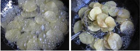 8.油锅5.6成热时,下入薯片。