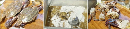4.把剁好的蟹块放入面粉内裹一层面粉