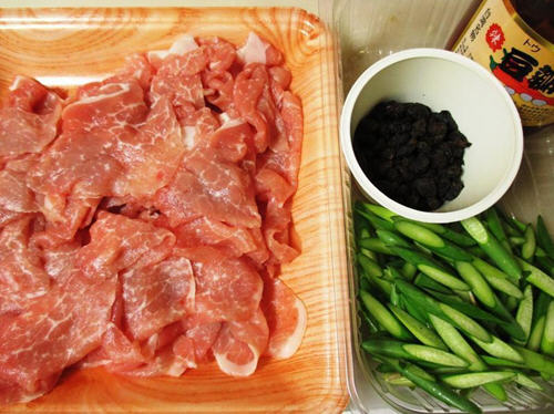 1、准备好所有材料:这道菜对猪肉肉质讲究,最好是三成肥、七成瘦的后腿肉,必须切掉皮,因为爆炒后皮变硬,会影响口感。也可以用较瘦的五花肉来做。青蒜切斜片备用,豆豉和豆瓣酱可以切细一点。