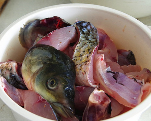 1、鱼处理干净斩大块,放少许食盐和一点白酒腌制一会去腥,用纸巾吸干鱼身上水分,均匀抹上生粉裹上蛋液(也可以不用蛋液,只要您有能将鱼炸金黄而不散掉就可以了哈)鱼块可以斩大些,我这个是卖鱼的给弄的,我嫌小了,一条鱼斩成四五节就行了。