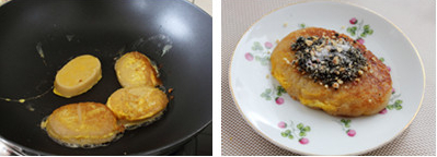 5.入热油锅中煎制,一面煎黄,翻面煎另一面