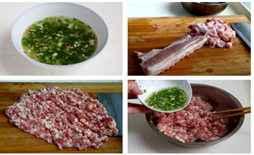 2.肉要确保充分吸收进葱姜水,慢慢的一点一点的加。