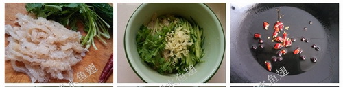 配料:黄瓜切丝,香菜切段,大蒜切末