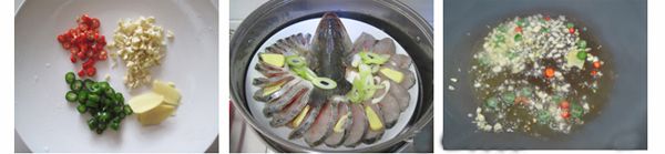 配料:小米辣和朝天椒、蒜末、辣椒、料酒、酱油、蒸鱼豉油、白砂糖和盐