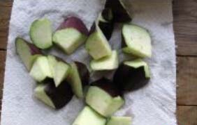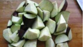 2.茄子洗干净,不用去皮,直接切成滚刀块;