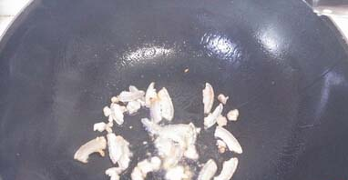 6.炒锅中倒少许植物油,将肥肉倒在里面煸炒出油;