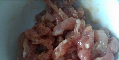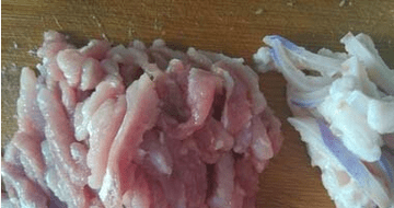 4.猪肉的瘦肉和肥肉分开切成细丝备用;
