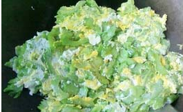 7.直至鸡蛋完全炒散,煎至金黄色后就可以出锅了。