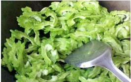 5.炒锅中油烧至6成热后把苦瓜倒进去煸炒至变色;