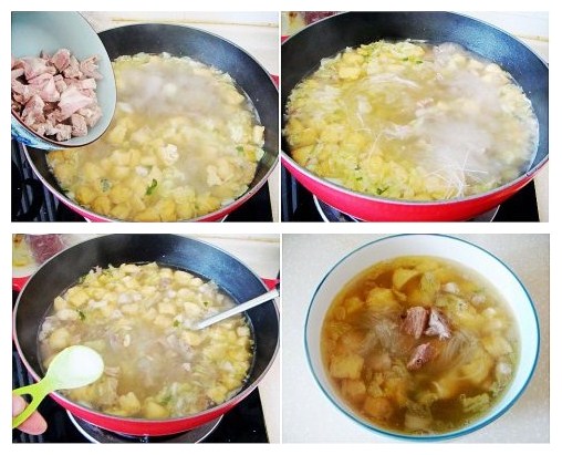 11.将煮好的羊肉粉丝汤盛入大碗。