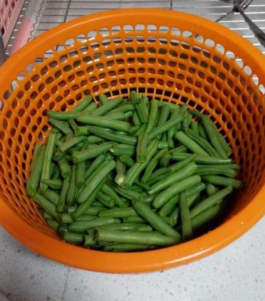 1、刀豆摘下后,去掉头和尾稍,洗净,折成小段。