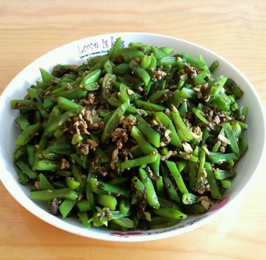 2、油少放,橄榄菜很油,盐可以不放,如果刀豆和肉末多的话可以放一勺豆瓣酱。