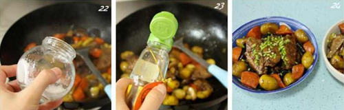 22、根据个人口味,加入适量盐,大火开后转小火,加盖继续焖煮,直至汤汁基本收干。