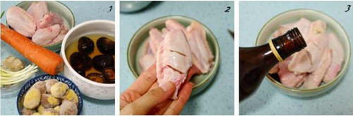 配料:干香菇,少许料酒,胡萝卜,姜,葱取葱白,蒜
