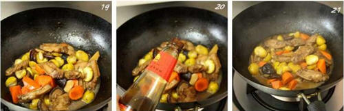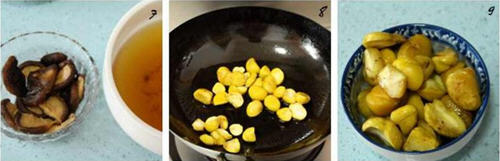 3. 栗子先煎炒一下,一是比较容易入味,二是在后面焖煮时不容易煮烂,三是口感会更加粉糯。