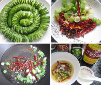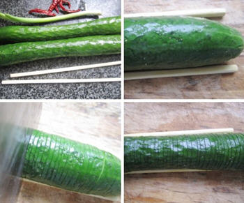 蓑衣黄瓜说白了还是凉拌黄瓜,之所以被称作蓑衣黄瓜,是由形状而命名的。虽然都是黄瓜的凉拌菜,但不同的菜色也还给人不一般的享受。像这道蓑衣黄瓜的特点就是连而不断,看得像盘成一转的青蛇一般,又像拉开的手风琴,能让人发挥想像,联想到很多美的东西。要做出漂亮又好吃的蓑衣黄瓜,首先得学习怎么切蓑衣黄瓜,其次才是如何调出好吃的味道,接下来就用图文结合的方式同大家分享蓑衣黄瓜的刀法演示,及如何调味才好吃的做法技巧。