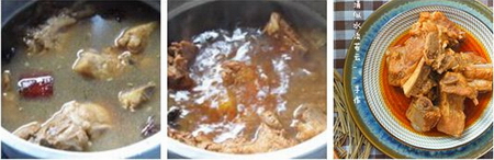 6.转入炖锅里用小火煮1小时左右,到8分熟时,加盐调味