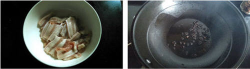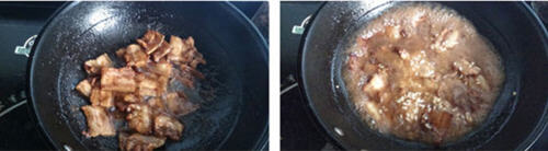 3、五花肉中有肥油的部分,第四步中将五花肉煸炒2-3分钟,可将其中的肥油逼出,吃起来不易腻。