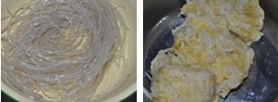 3.取一小把粉丝用水泡软。