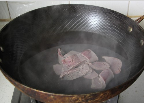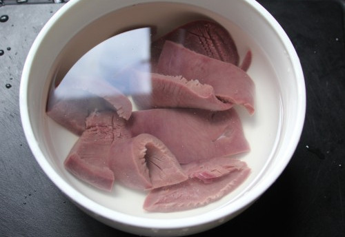1、片好花刀的腰花洗净放入清水中浸泡。