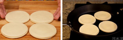 2、注意提前预热烤箱和平底锅。如果用的是不锈钢锅子,一定要充分预热,否则馍坯会粘在锅底。