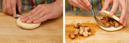 26、把50克腊汁肉切碎后填到白吉馍里面,人见人爱的绝顶美味腊汁肉夹馍就完工了。