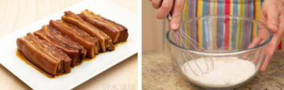 猪肋条肉1000克。肋条肉就是猪肋骨外边的五花肉,又叫做上五化,如果买不到,也可以使用猪腹部的五花肉,无论哪种五花肉,尽量选用那些脂肪层比较薄的但是层数比较多的部位,就像下图我们用到的这些。有些方子会建议使用带骨头的五花肉,个人认为没有多大必要。