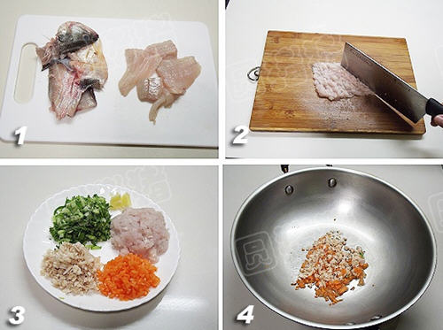 1.将鲈鱼用利刀去骨,去皮,取出鱼肉