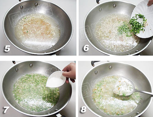 8.玉米淀粉、清水在碗内调匀成水淀粉,淋入锅内,煮至汤变浓稠即可