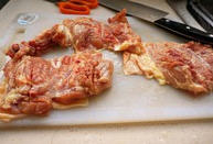 1、 鸡腿拆掉骨头,用刀背拍松,撒盐腌制10分钟。