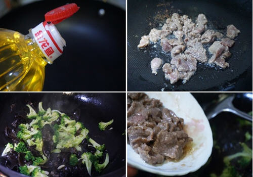 主料:牛里脊肉 50克,西兰花100克,黑木耳5克