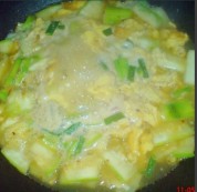 6、放入丝瓜,加入盐、白胡椒立即关火即可。